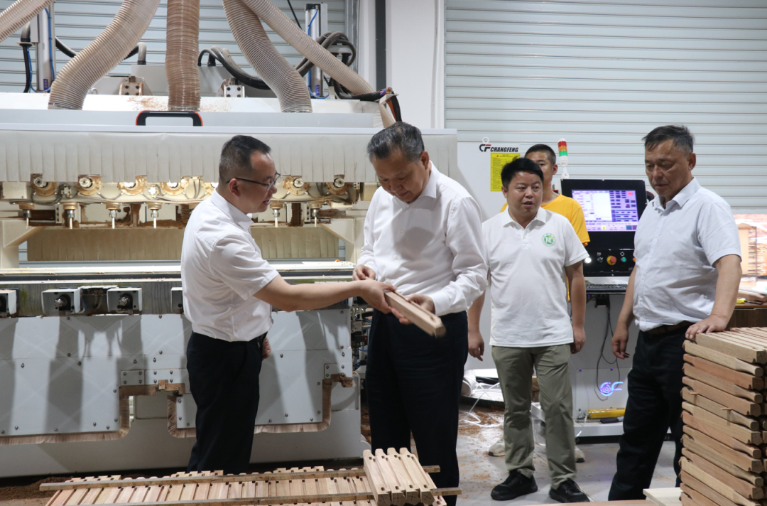博览会期间,徐祥楠理事长在南康区产业集群发展中心党组书记刘勇明、南康区人大副主任谢兴、江西省家具协会会长刘伟等陪同下,走访A家家居、团团圆、自由王国、思凯林、爱扬家居、圣蒂斯堡等企业,考察南康当地品牌企业发展情况,调研南康家具产业在智能制造、智慧管理、品牌营销方面的创新成果。