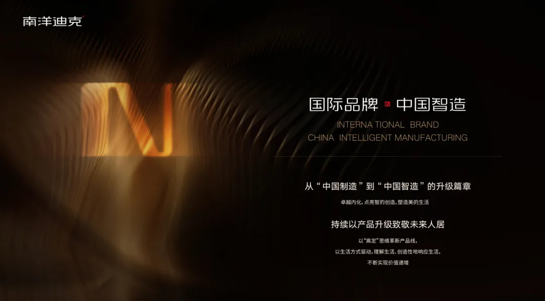 未来,在“全案系统家居”的整体公司战略下,南洋迪克将不断透过匠心求索的天赋光环,洞察个性需求,赋能智慧生长,孵化市场运营,强化供应链支撑,为让所有人享受到品质生活之美而持续奋斗。为持续提升中国家居的产业高度,强化家居行业的产业地位,引领中国家居产业走上发展之道、中兴之道、光明之道而躬身耕作;为推动“中国智造”走向世界而不懈努力。