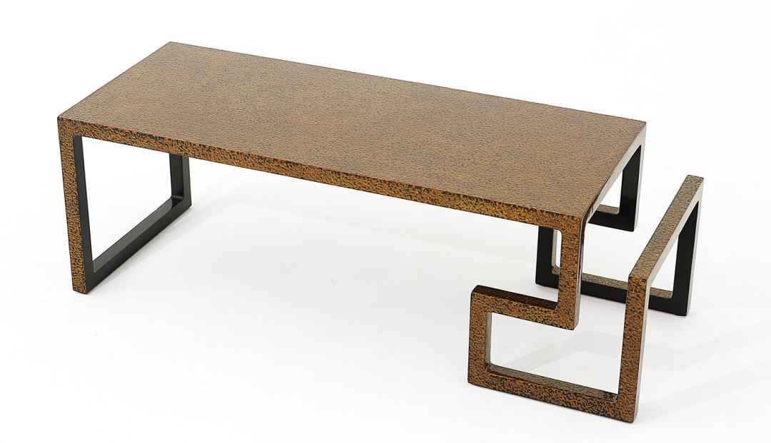 材质上采用木胎为基础,结合传统榫卯结构工艺,坚固耐用,无钉无胶,体现古代家具的匠心工艺。表面以国家级非遗技艺——大漆犀皮漆精心髹饰。犀皮漆工艺通过多层漆面堆积、打磨,形成如兽皮般斑驳细腻的纹理,色泽温润沉稳,散发出深厚的历史感和艺术气息。